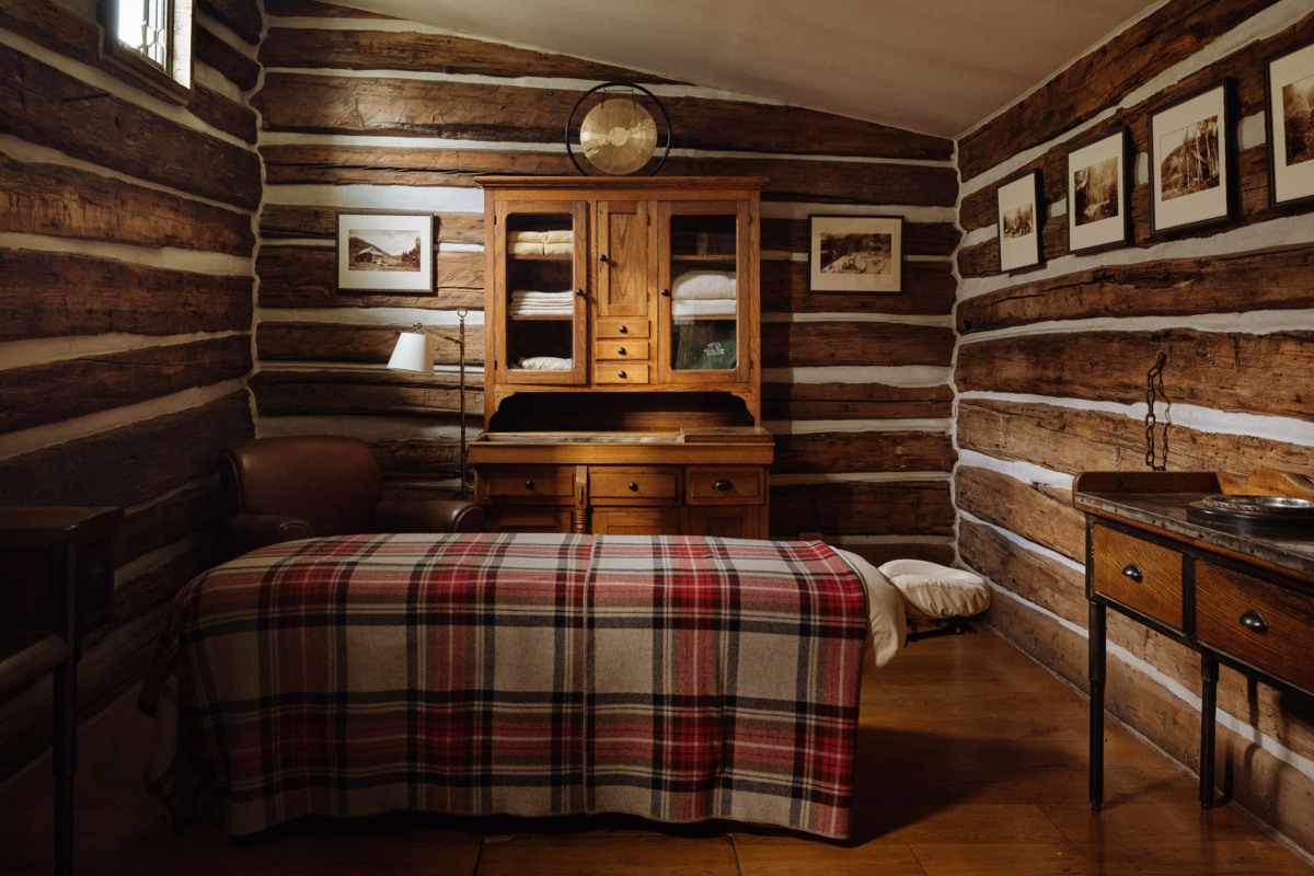 Elke accommodatie vertelt een ander verhaal. Chuck’s Cabin, een van de oudste gebouwen van de nederzetting, werd grondig hersteld en uitgebreid tot een royale familiewoning. Originele houten wanden bleven zichtbaar, terwijl maatwerkmeubilair, een houtkachel en nieuwe vloeren warmte en rust toevoegen. Major Ross Cabin kiest een uitgesprokener koers. Hier ontmoeten robuuste westernreferenties en hedendaagse vormgeving elkaar in textuur, licht en kleur. Het resultaat is speels en gelaagd, zonder los te raken van de omgeving. Well House biedt juist maximale afzondering. Met een privé warmwaterbron en koude plunge wordt baden hier een persoonlijk ritueel. Achter de schermen werd de infrastructuur vernieuwd, zodat eenvoud en comfort de hoofdrol spelen.