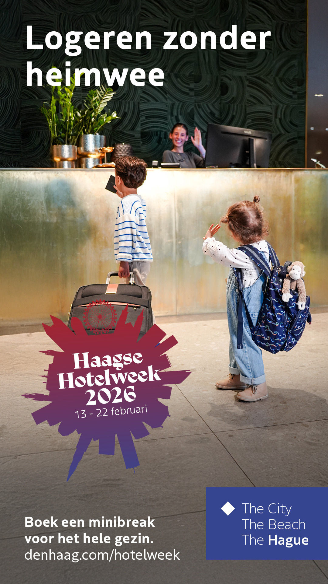 De Haagse Hotelweek richt zich in de eerste plaats op bewoners en omwonenden van Den Haag. Voor stellen, vrienden en gezinnen biedt een hotelovernachting dichtbij huis een andere blik op de eigen stad. Juist voor gezinnen in de voorjaarsvakantie is het een laagdrempelige manier om er samen even tussenuit te zijn, zonder ver te reizen.