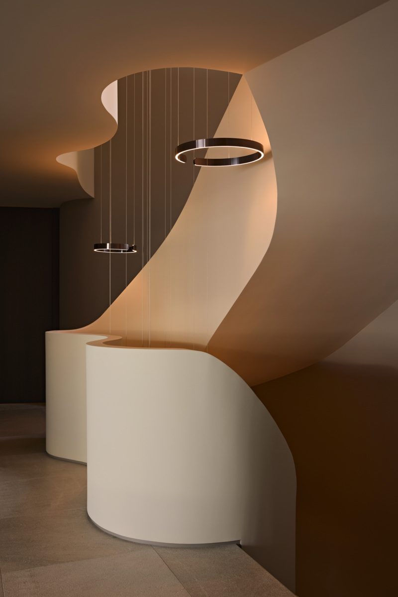 Het ingenieuze oprolmechanisme maakt het mogelijk de lengte van de armatuur traploos aan te passen – van 50 tot 200 cm – zonder dat de balans verloren gaat. Of het nu boven een eettafel, vergaderruimte of kookeiland hangt, Mito sospeso beweegt met de gebruiker mee en creëert altijd de juiste lichtsfeer.